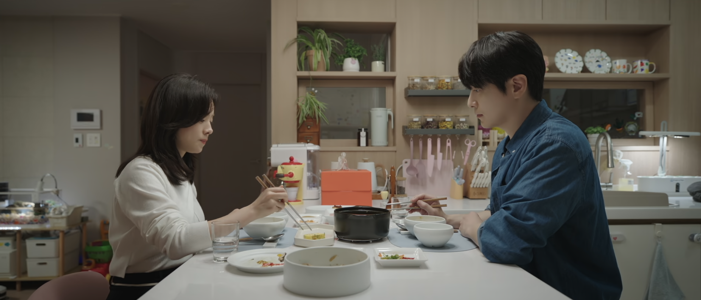 강지윤(한지민)은 고양이 같습니다. 날카롭게 날이 서서 누구에게도 정을 붙이려 하지 않는데요. 그런 강지윤의 마음을 서서히 열어가는 건 유은호(이준현)의 따뜻함입니다. 집밥. 꽤 오랫동안 따뜻함이 느껴지는 집밥을 먹어보지 못했던 강지윤은 유은호(이준혁) 집으로 초대되어 직접 만든 된장찌개를 먹게 되죠. 요리하는 남자. 그런데 요리하는 뒷모습이 멋있는 남자. 그런데 그 뒷모습보다 더 맛있는 요리. 이 정도면 마음을 활짝 열고도 남을 듯합니다.