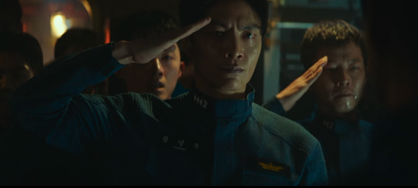영화의 중심 내용은 물론 전태성(이종석)과 강도영(김래원)의 갈등 풀기입니다. 이 두 사람은 한라함이라는 잠수함에 승선해있던 해군이었습니다. 부장과 대위 관계였습니다. 그런데 어뢰 사고로 한라함은 침몰하고 승선해있던 44명의 해군은 어두운 바다 밑에서 목숨을 잃을 위기에 처합니다. 그때 부장인 강도영은 잔인한 조치를 취합니다. 제비 뽑기를 해서 절반의 인원을 포기하고 그만큼의 산소를 벌려는 시도였습니다. 그 과정에서 전태성의 친동생 전태룡(차은우)이 희생됩니다. 그 복수를 하기 위해 전태성은 폭파범이 된 것입니다.