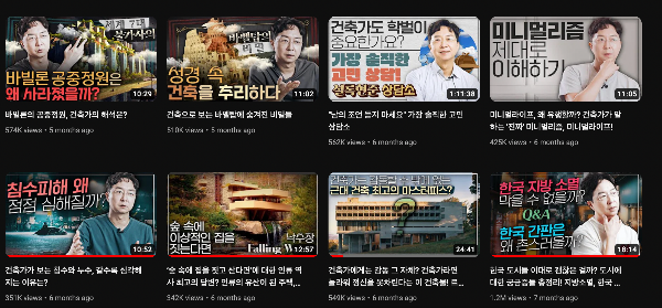 저도 디자인을 전공한 사람이지만 건축은 모르는 분야였습니다. 그런데 건축에 대한 지식이 접목되니 또 다른 관점으로 환경, 사물들을 보는 법을 배우게 되었습니다. 그리고 세상을 보는 관점이 하나 더 늘어나면 세상이 좀 더 넓어지고 즐거워지는 걸 새삼 느꼈고 말이죠. 셜록현준 채널을 보다보니 비슷한 다른 채널들을 유튜브가 추천해주고 있습니다. 이상한 가짜뉴스가 아닌 진짜 양질의 콘텐츠들을 유튜브가 뽑아주는 것이죠.